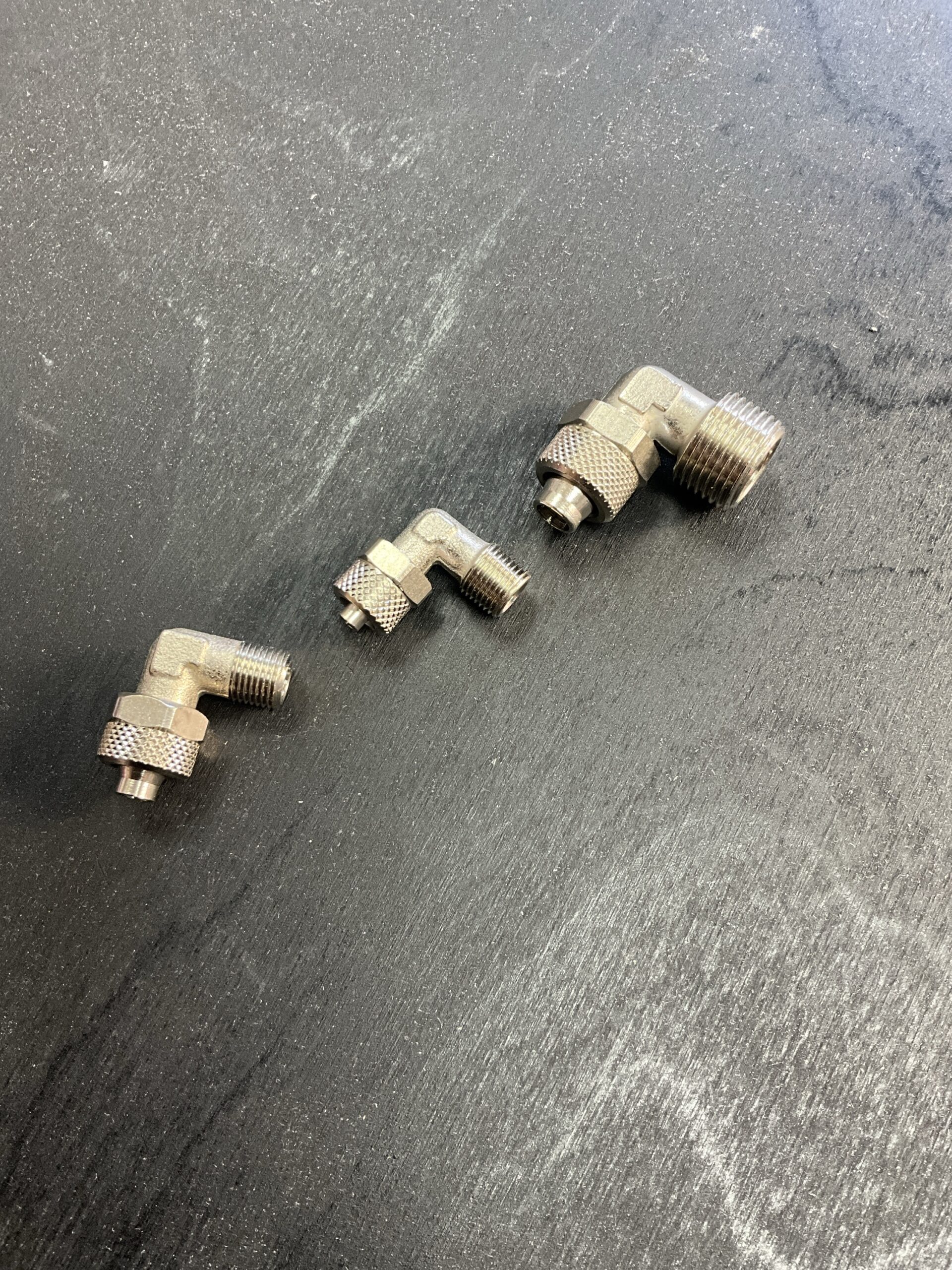 Gomito maschio conico a calzamento per aria compressa realizzato in ottone nichelato . Sopporta temperature d’esercizio variabili da -40 ºC a + 150 ºC e pressioni fino a 25 BAR. Il raccordo pneumatico può essere utilizzato con tubi Rilsan PHL, Poliuretano PU e Teflon PTFE
